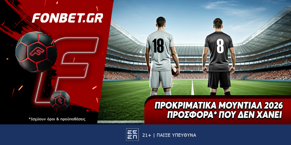 Μπορείτε κι εσείς να επωφεληθείτε από την προσφορά* της Fonbet στα Προκριματικά Μουντιάλ 2026. Μάλιστα, αφορά τόσο τα pregame στοιχήματα, όσο και αυτά στο live. Επίσης, υπάρχει κι άλλη προσφορά*, αυτή για τους αγώνες στο NBA. Θα μπορέσεις να διεκδικήσεις την κορυφή απέναντι στους άλλους παίκτες; Μπαίνεις στη νέα πλατφόρμα της Fonbet, παίζεις και κερδίζεις μοναδικά έπαθλα*.