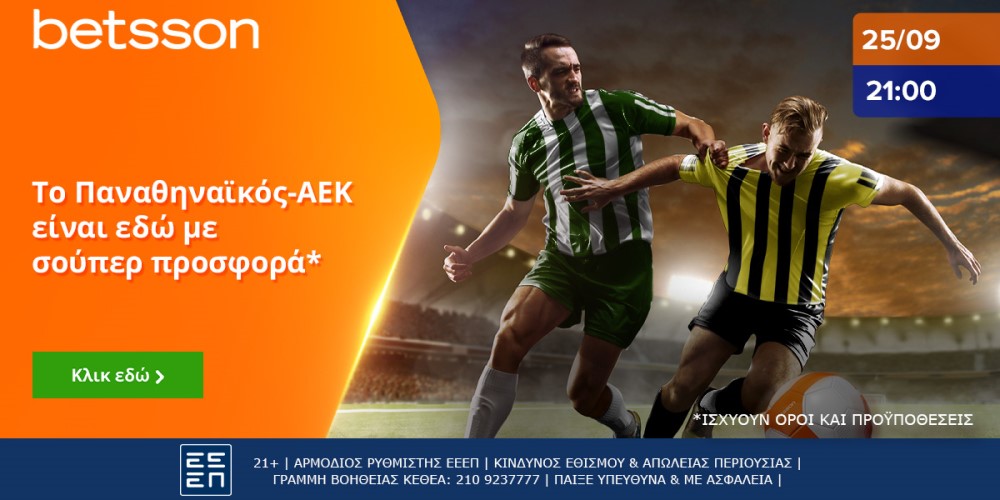 Μέχρι τότε, στην Betsson θα βρείτε μία σούπερ προσφορά* για το παιχνίδι του Παναθηναϊκού με την ΑΕΚ.