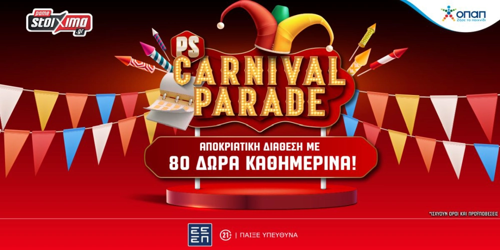 Πέρα από το καθημερινό τετραήμερο calendar του PS Carnival parade, το Σάββατο 1η και την Δευτέρα 3η Μαρτίου (00:01-23:59), όλοι μπορούν να μπουν σε ρυθμούς καρναβαλιού με τα συναρπαστικά δώρα* που θα προσφέρει το Pamestoixima.gr εντελώς δωρεάν για όλους.