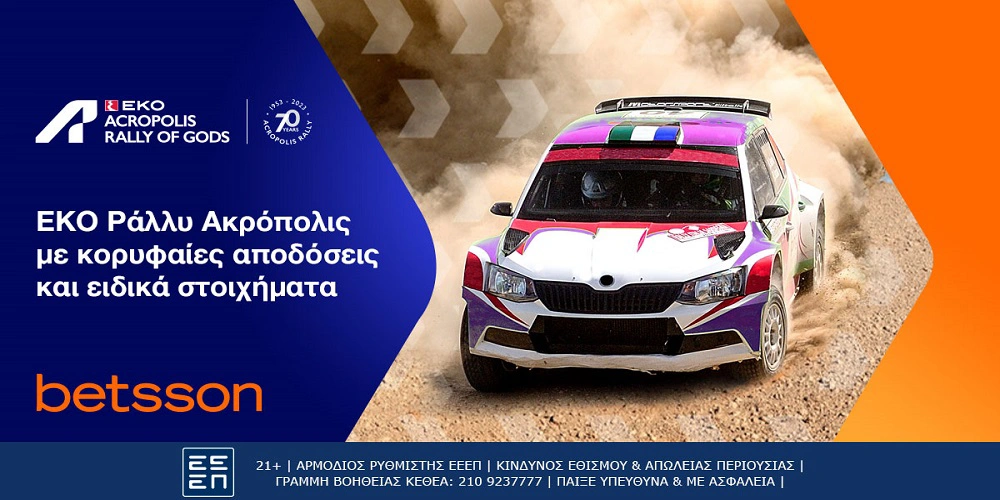 Για την επέτειο των 70 χρόνων του στη διεθνή αθλητική σκηνή το «Ράλλυ των Θεών» υπόσχεται σπουδαίο θέαμα και δυνατό ανταγωνισμό στα ελληνικά βουνά σε 15 ειδικές διαδρομές που κόβουν την ανάσα. Η Betsson, υπερήφανος χορηγός του EKO Ράλλυ Ακρόπολις, προσφέρει αμέτρητες αγορές για τον αγώνα και πάντα με ασυναγώνιστες αποδόσεις.