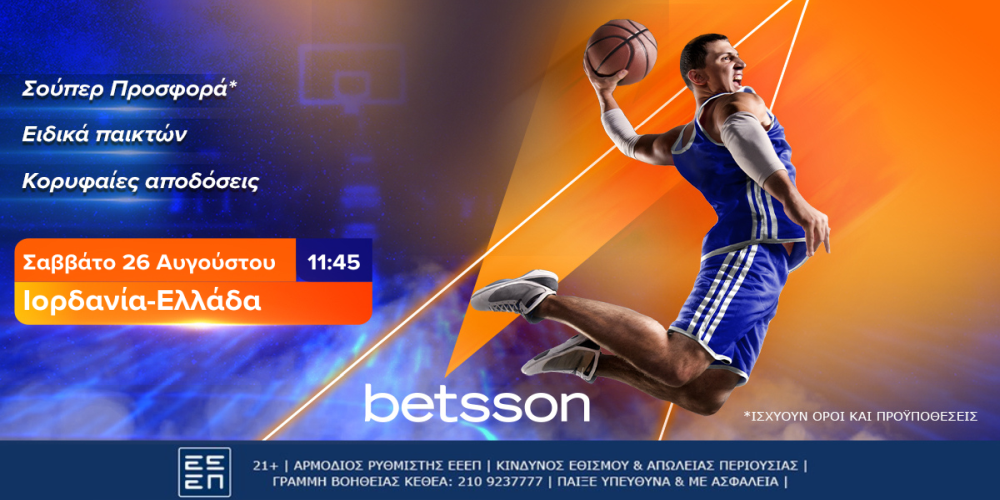 Η Ελλάδα είναι το μεγάλο φαβορί για να επικρατήσει. Σε σημείο που προσφέρεται στο 1,04** απέναντι στην αδύναμη ομάδα της Ιορδανίας που δίνεται στο 12,00** για να κάνει τη μεγάλη έκπληξη, στην πλατφόρμα της Betsson. Στο μεταξύ, το χάντικαπ της Ελλάδας στο -23,5 (με παράταση) βρίσκεται στο 1,98**.