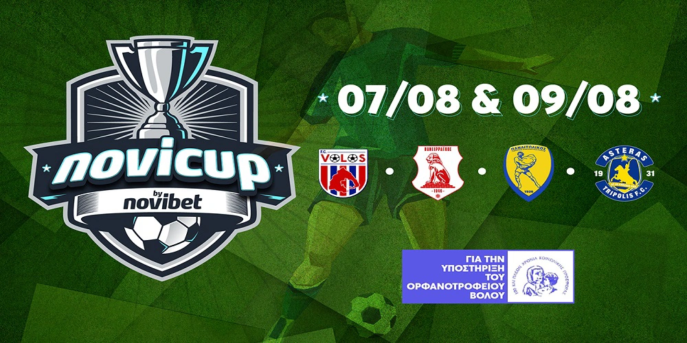 Αθήνα, 04.08.2023 - H Novibet είναι χορηγός του φιλανθρωπικού τουρνουά NoviCup by Novibet που πραγματοποιείται στις 7 και 9 Αυγούστου, με τη συμμετοχή και των ομάδων Βόλου, Παναιτωλικoύ και Πανσερραϊκού και Αστέρα Τρίπολης. Η εταιρεία παραμένει πιστή στη δέσμευσή της για προώθηση του υγιούς αθλητισμού και της κοινωνικής προσφοράς και σε αυτό το πλαίσιο υποστηρίζει ενεργά το τουρνουά που υλοποιείται για δεύτερη συνεχόμενη χρονιά στην πόλη του Βόλου, για καλό σκοπό.