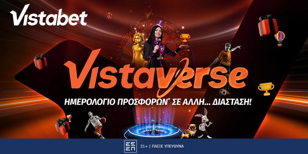 *Ισχύουν όροι και προϋποθέσεις. Η προσφορά αφορά εγγεγραμμένα μέλη της Vistabet που έχουν πραγματοποιήσει τουλάχιστον μία κατάθεση χρημάτων.